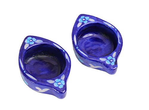 - Feature : Store Indya Christmas Sale - Flat 70% Off ! / Dimensions: Diameter - 3.5 inches & Height - 2 inches. / Vibrantly hand painted in blue and cobalt colors by the traditional potter artisans of Jaipur in Rajasthan, India. Their distinct colors make them extremely appealing. / They are perfect for decoration in any room and ideal for the mantelpiece, on the dining table and great in the garden on a warm evening. Their simplistic yet pretty structure makes them an absolute must have for any home. Place them as a set or individually and let them illuminate any dull area of your home. Unique in every aspect, they make memorable gifts for any occasion. / These products are G.I. certified (Geographical Indication) since the art requires natural elements available only in Jaipur, such as its unique weather, soil and the beautiful blue Jaipur sky to give the product its finish.
