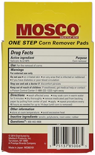 MOSCO One Step Corn Remover Pads, Max Strength, 8 Medicated Pads