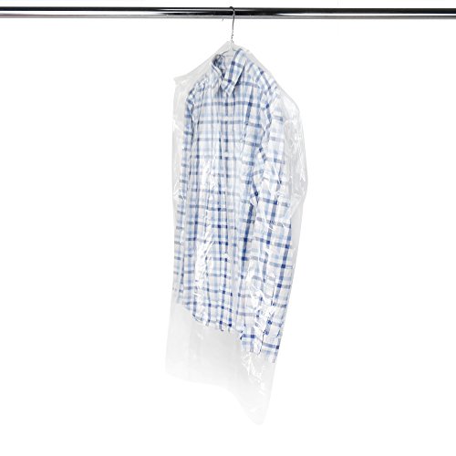 -. Feature : 20 polythene clear garment bags - 38 Inch Long (100cm) - As used by quality dry cleaners. / Shaped shoulders and preformed hole for hanger hook. Ideal for closet, storage or travel. / Perfect length to cover suits, shirts, blouses, tops etc. High quality 100 gauge thickness. / High quality 100 gauge thickness. BHT free. Gusseted sides allowing plenty of room for more than one garment. / Size approx. 24" x 38" long. Trusted Hangerworld Brand.