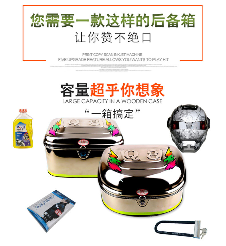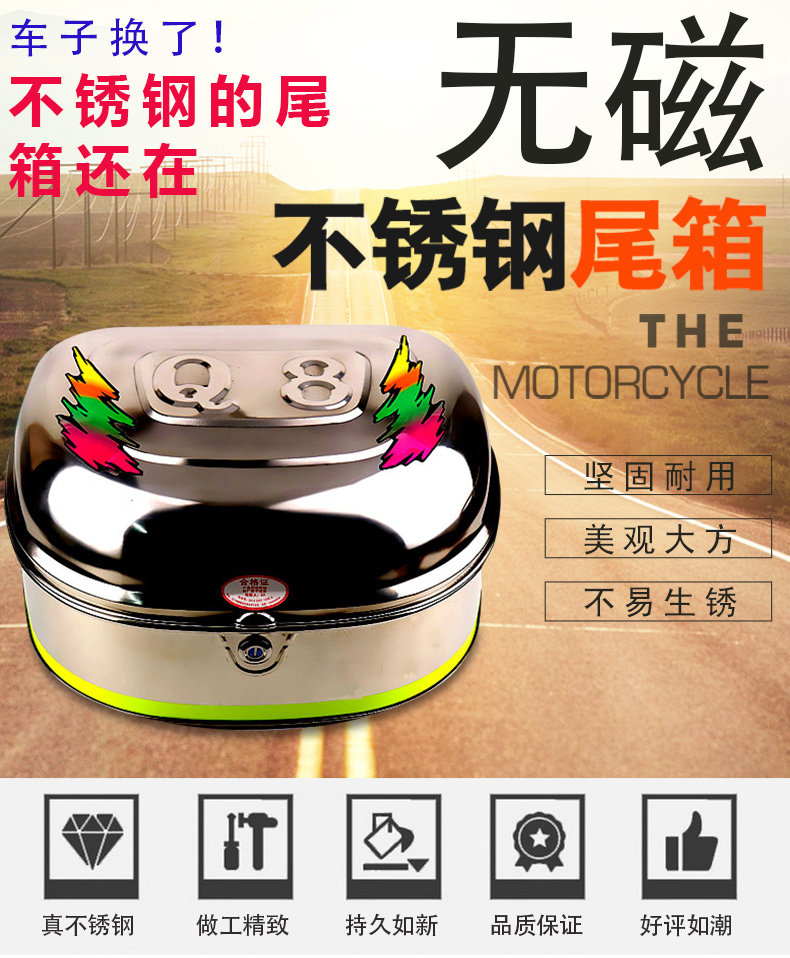 󰄬包邮 摩托车后备箱 尾箱 电动车后尾箱特大号 加厚不锈钢工具箱