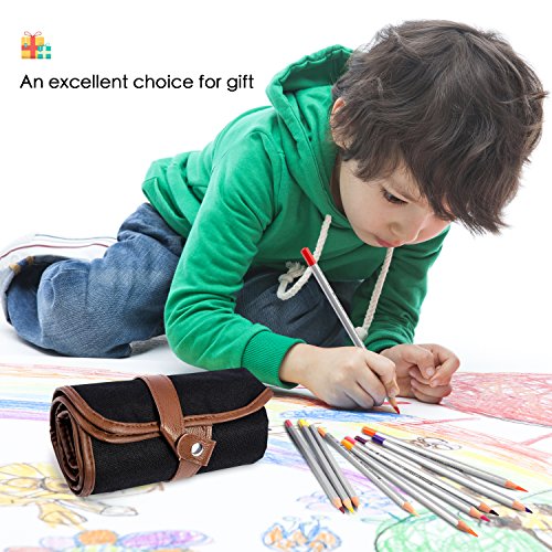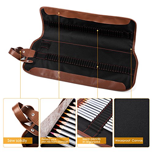 Colored Pencil Case Holder, Lucco 72 Holes 24 Colored Pencils Set Portable Roll-Up Canvas Wrap Case Waterproof Color Pencils Bag For Artists, Beginners, Students-24 Colors