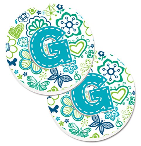 Caroline's Treasures Letter G Flowers & Butterflies Teal Blue Set of 2 Cup Holder Car Coasters CJ2006-GCARC, 2.56, Multicolor