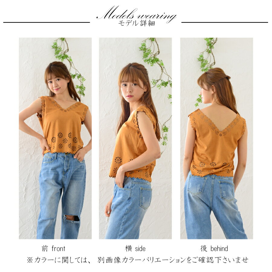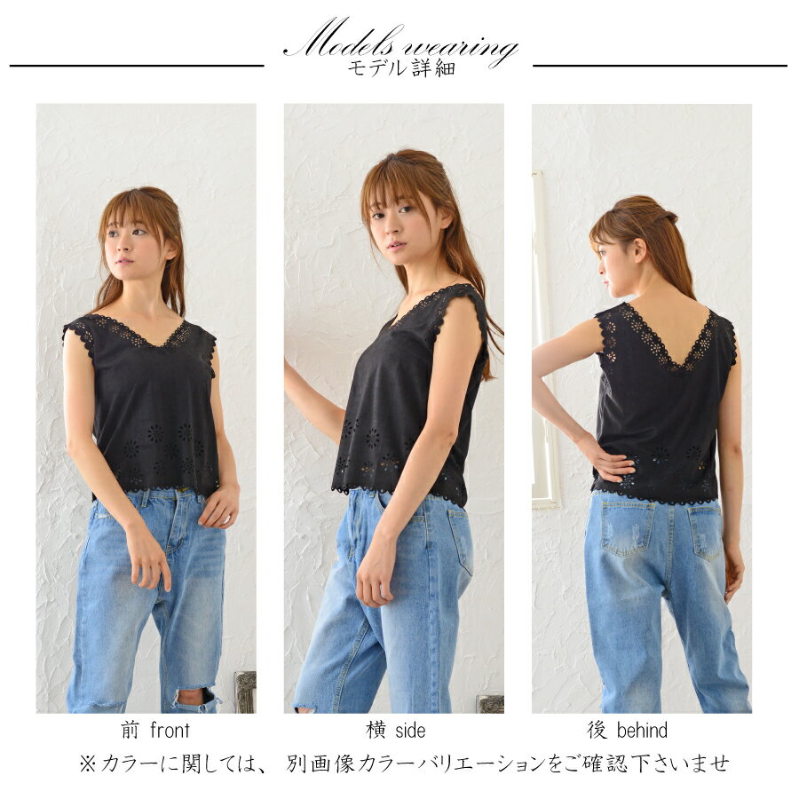 秋冬のトレンドのスウェードで、衿ぐりライン、裾、袖ぐりの切り抜かれたモチーフがポイント。