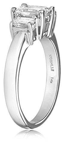 The remarkably striking design of the Kobelli Three-Stone Emerald-Cut Diamond Engagement Ring shows off style fit for any princess. This diamond engagement ring will impress all with its high-polished 14k white gold, emerald-cut diamonds, and total weight of 1.5 carat. The front of the band is set with three splendid emerald-cut diamonds that complement polished 14k white gold. The three brilliant diamonds at the center sparkle from every angle. This ring features a total weight of 1.5 carat and measures 2.47 millimeters wide and .33 inch long.Feature