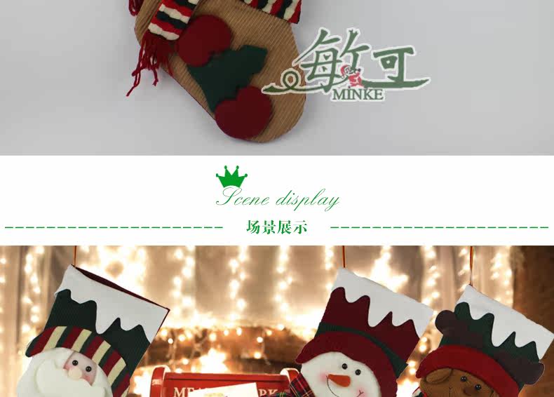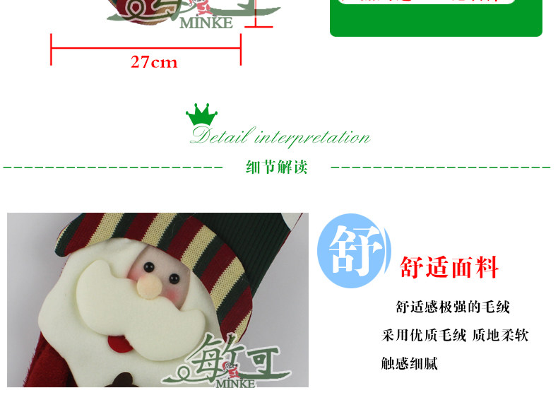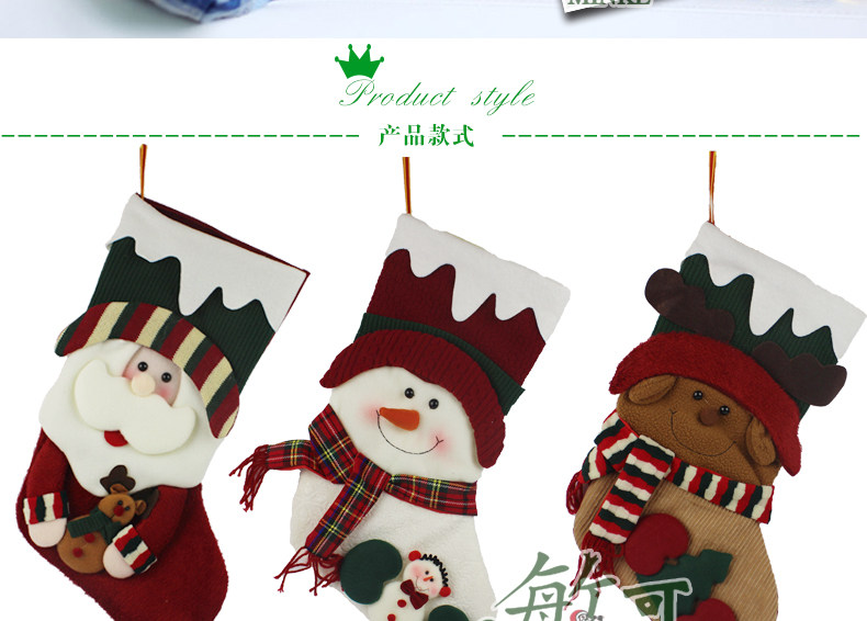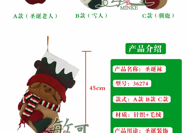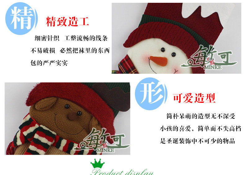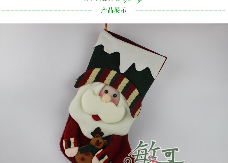敏可 中号圣诞袜 针织袜子 圣诞老人平安夜礼物袋 卡通装饰品袜子