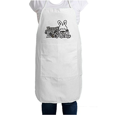 Happy Easter Apron - White - Happy Easter Sunday Design With Easter Bunny - Fits Most Adults - With 2 Front Pockets - Prevents Stains While Preparing Food