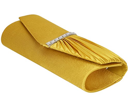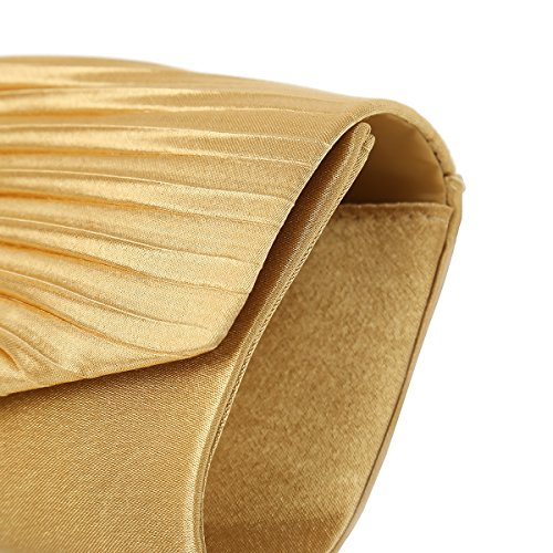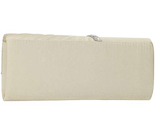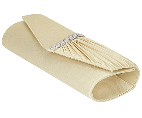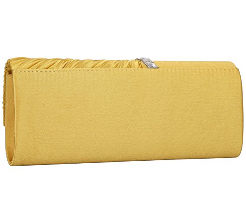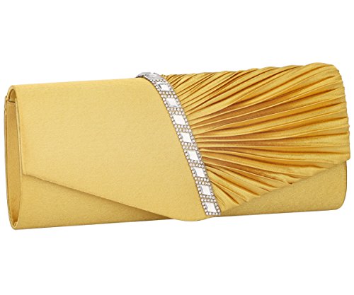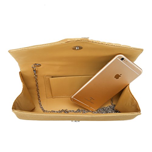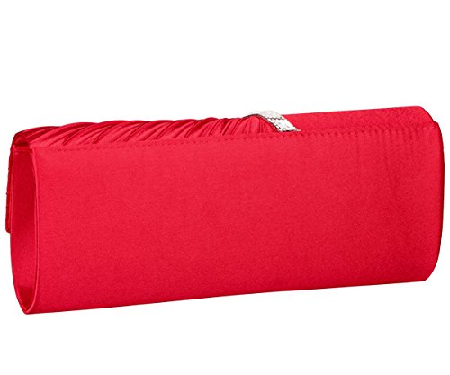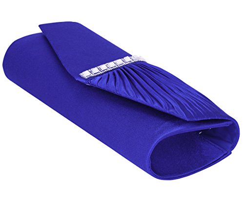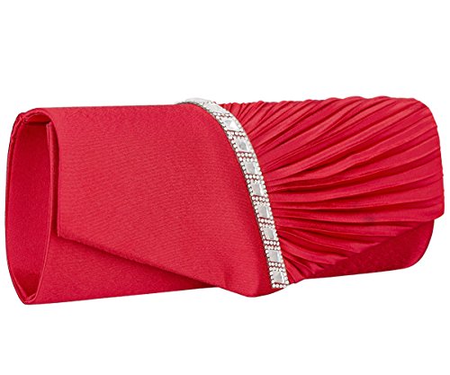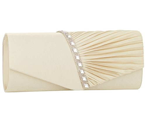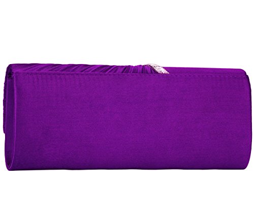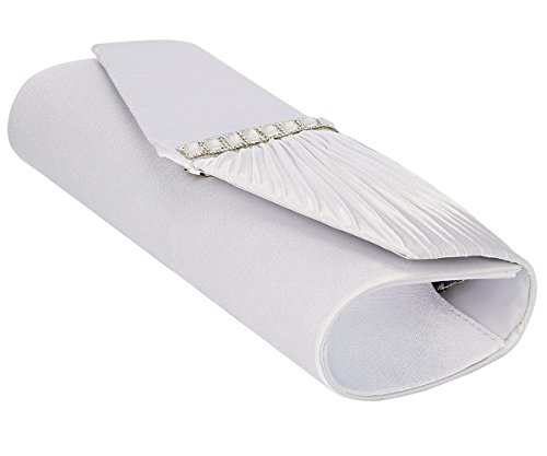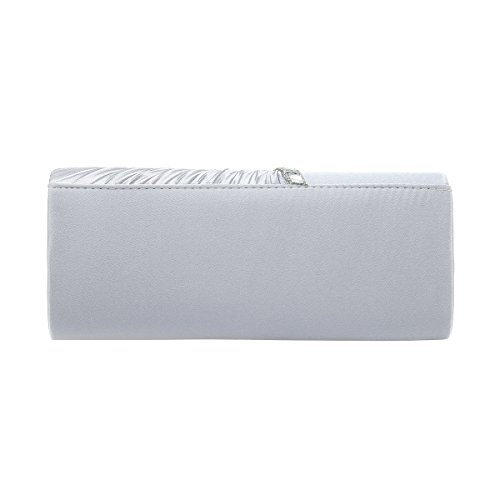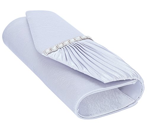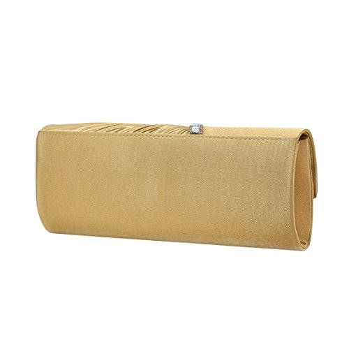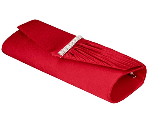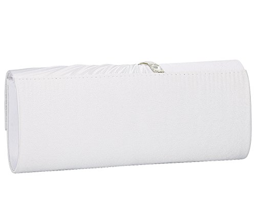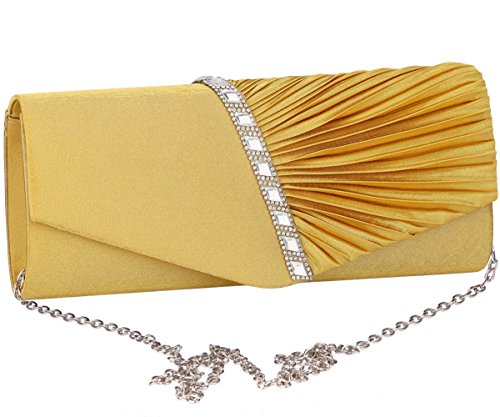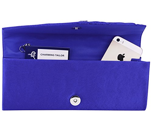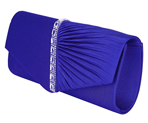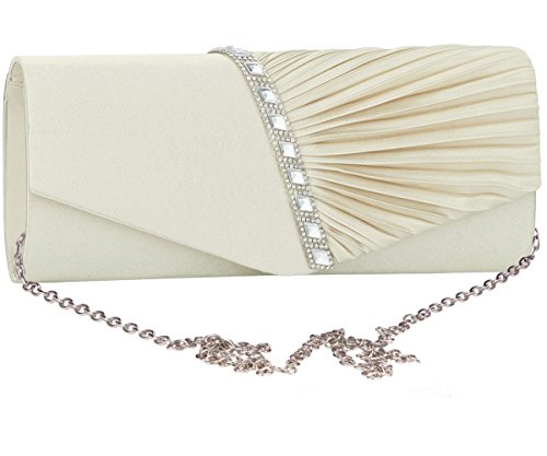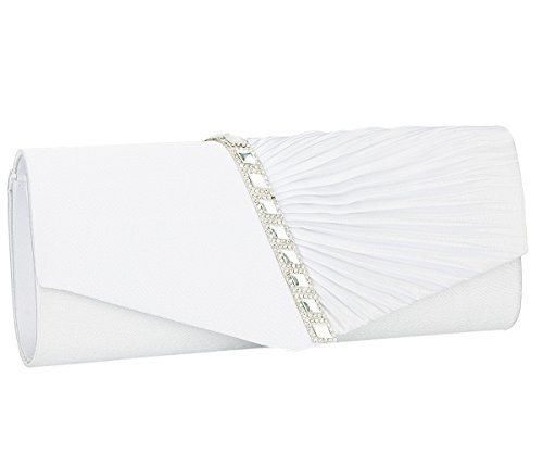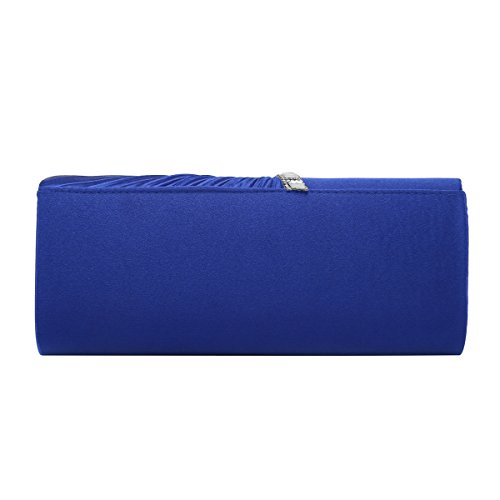Detailed Features: Dimensions: W9.8 x H4.3 x D1.9 inches or W25 x H11 x D5 cm, spacious room and it effortlessly holds all the essentials, large smart phone, iPhone 7, makeup, glasses, wallet, tissues, lipstick, blotters, battery charger. Precious and feminine touch, made of high quality satin, with solid case frame. Satin lining Flap Opening with ingenious magnetic snap, will keep your belongs secure and allow you to open the clutch easily Elegant Ornament, a band of shinning rhinestones details and pleated fabric design, which favor this bag elegant and charming. Great for wedding, party, prom, ball or other day or evening events. COMES WITH O SHAPE METAL CHAIN (with 21.5” drop), WON'T GET CAUGHT YOUR LONG HAIR OR GRACEFUL DRESS.
