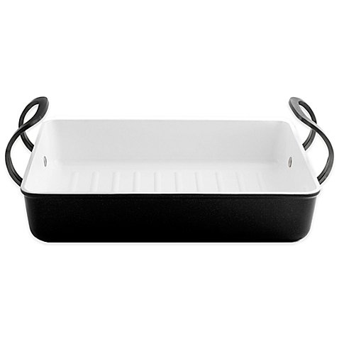 -. Feature : BergHOFF Eclipse Roaster will brighten up any kitchen setting with its crisp, clean design / Nonstick aluminum cooking surface for effortless release of foods | Oven safe to 500° F / Easy to grip stay-cool handle on pan | Designed for energy-efficient cooking and even heat transfer throughout / Ceramic construction | Hand wash / Measures 16" L x 10" W x 5.7" H