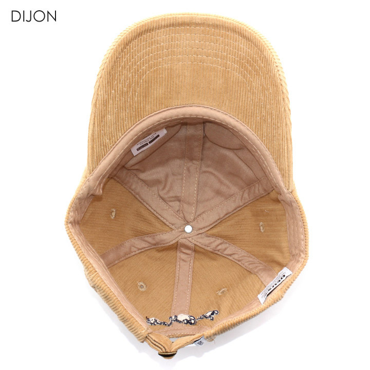 季節感のあるコーデュロイ素材に、ロゴモチーフの刺繍をデザインした6パネルのストラップバックキャップです。