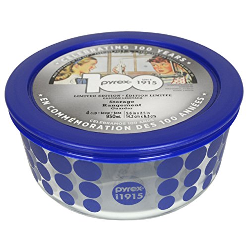 Pyrex 100 4 Cup 100th Anniversary Blue Dot Storage Dish