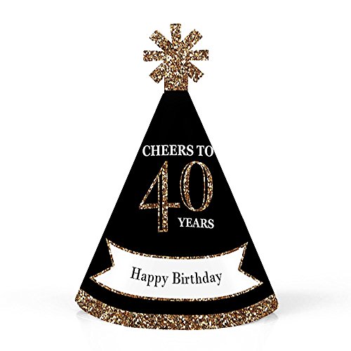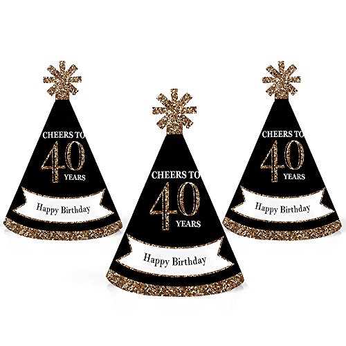 -. Feature : Adult 40th Birthday - Gold Mini Party Hats INCLUDES 10 Adult 40th Birthday - Gold party hats with elastic chin straps. Mini birthday party hats will fit both children and adults. / 10 Adult 40th Birthday - Gold party hats SIZE 4.5 inches tall and 3 inches in diameter at the base. The included elastic chin straps measure 12 inches long. These cute 40th birthday party accessories feature a unique star cut-out decoration at the top and the P.R.Inted saying "Happy Birthday". / FUN 40TH BIRTHDAY PARTY ACCESSORIES: Adult 40th Birthday - Gold mini party hats are perfect for your black and gold party. This set of cute tiny party hats will help you take adorable birthday photos. Best of all, mini party hats are perfectly sized for adults, kids, and even pets, so everyone can get in on the photo fun. Little party hats are sure to be enjoyed by all your friends and family! / PREMIUM MINI PARTY HATS: Set of 10 Adult 40th Birthday - Gold mini party hats are professionally P.R.Inted on heavy-duty card stock paper with a photo-like shine. They are individually inspected, then carefully packaged. Adult 40th Birthday mini cone birthday party hats will arrive flat, with the chin straps attached. Easy assembly is required. Simply roll the party hat into a cone shape and slide the tab into the slot to secure. / MADE IN THE USA: Adult 40th Birthday - Gold - Mini Cone Birthday Party Hats are designed and manufactured at our Wisconsin facility using materials that are Made in the USA. Adult 40th Birthday - Gold Mini Cone Party Hats use a No-Mess Glitter P.R.Int: Our small cone party hats are designed with a P.R.Inted image of glitter, eliminating glitter flake while maximizing bling effect!