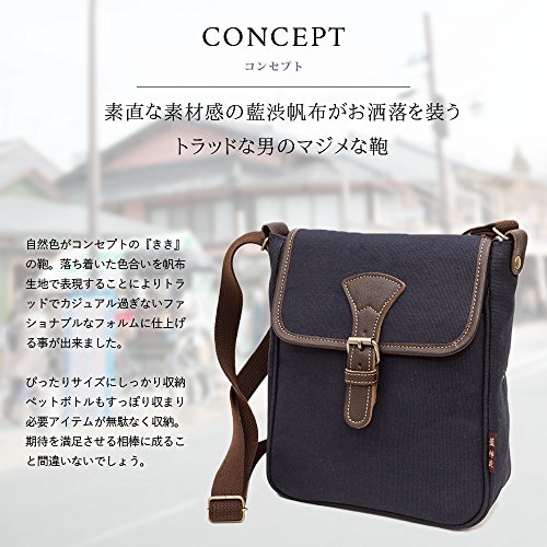 -. Title : [creareきき]藍 柿渋染 ショルダーバッグ 帆布 メンズ[miniフラップショルダー][日本製]革付属