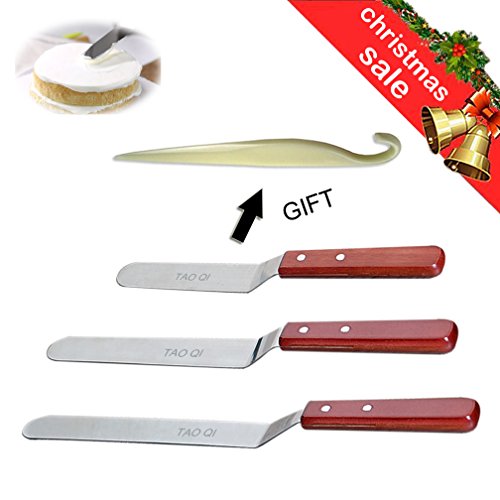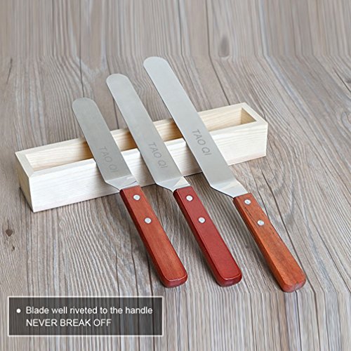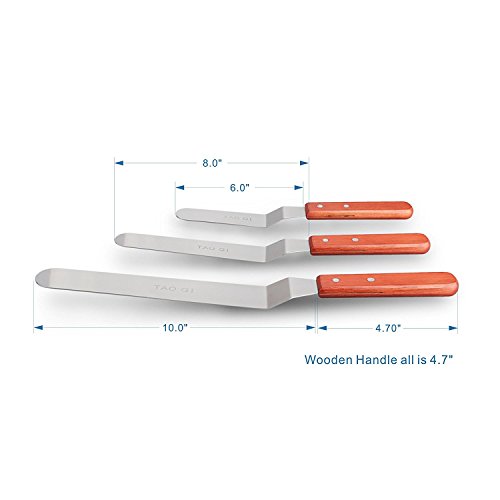 Angled Icing Spatula, Professional Stainless Steel Cake Decorating Tools with Wooden Handle Set of 3, 6-Inch, 8-Inch,10-Inch by TAOQI Cake Stripping Tool Gift