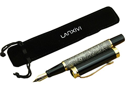 -. Title : Lanxivi® Dikawen 887 Fountain Pen Horse Engravementpen Pouch Gift Silver Color