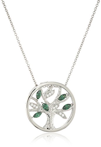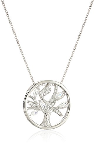-. Title : Platinum-Plated Sterling Silver Swarovski Zirconia Tree of life Pendant Necklace, 16"+ 2" Extender