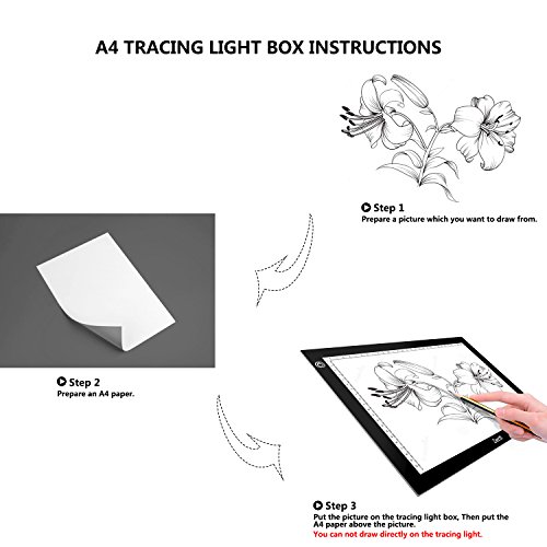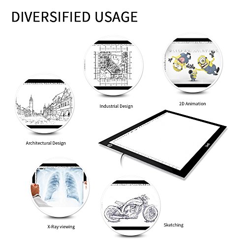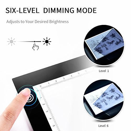 - Dimmable Brightness: With 6-level brightness adjustment and touch sensor,you just need to simply press the button of the tracing light pad to get your desired brightness.