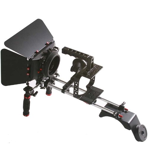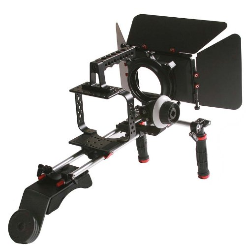 ePhotoInc DSLR Video Camera Cage Matte Box Steady Shoulder Mount Rig Counter Weight Follow Focus for BlackMagic Cinema Camera DMS802BMCM