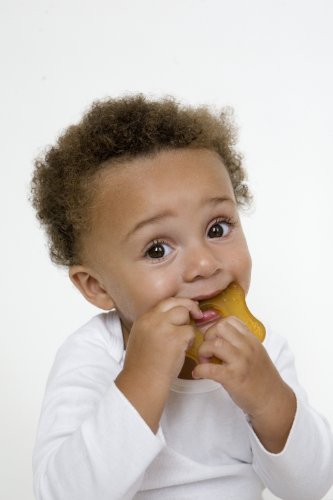 • When baby's first teeth erupt, it can cause the gums to hurt and be uncomfortable. To reduce this discomfort and soothe your baby, it may help for your child to bite into something.