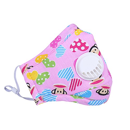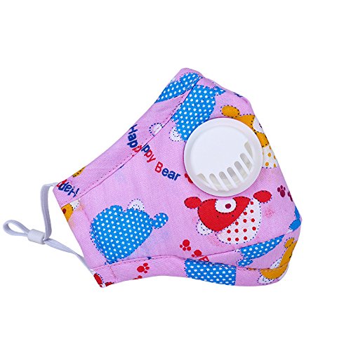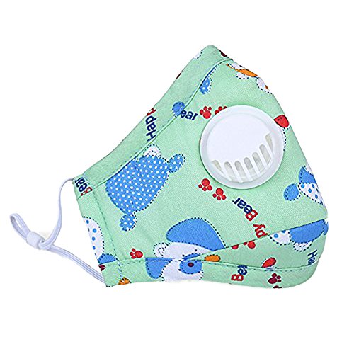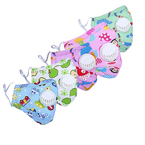 ZWZCYZ Kids Child PM2.5 Cartoon Cute Anti-Dust Cotton Breathable Mouth Face Mask With Respiration Valve Suit For 4-15 Years Old (Pack of 5)