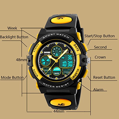 -. Title : Jelercy Multi Function Digital Watch LED Quartz Water Resistant Electronic Sport Watches for Boys Yellow