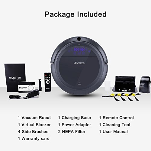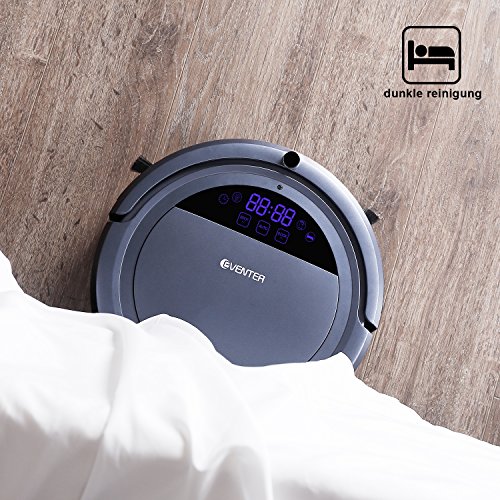 Eventer Robot Vacuum Cleaner Auto Adjust Suction and Cleaning Mode with Powerful Suction and Large Dust Box, Anti Pet Fur Allergens from Hard Floor and Carpet-Gray