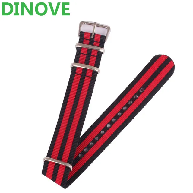 | [해외] DINOVE 최신 나토 나일론 시계 밴드 18 20 22 24 미리메터 스트랩 시간 블랙 레드 컬러 손목 시계 남성 스테인레스 스틸 버클 |