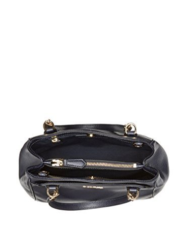• Navy blue cross grain leather with polished brass tone hardware