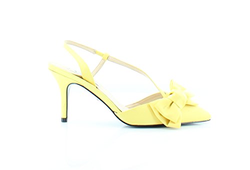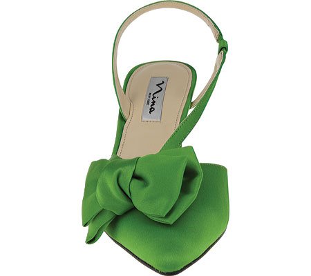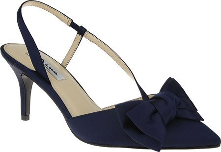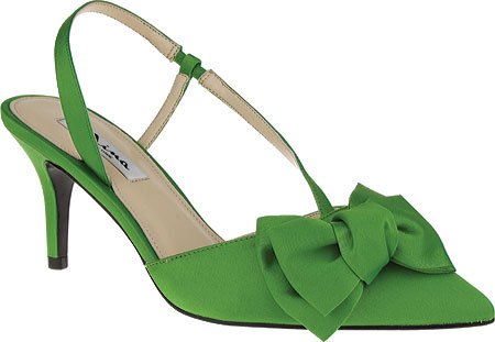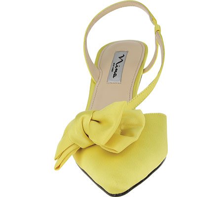Product DescriptionSatin upper with bow accent. Pointed toe. Man-made lining. Lightly cushioned man-made footbed. Wrapped heel. Leather sole. Imported.0