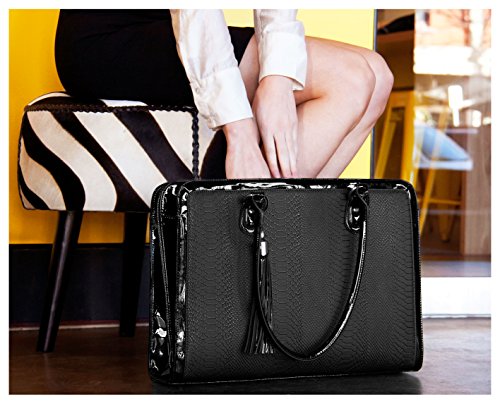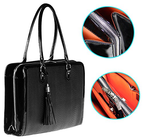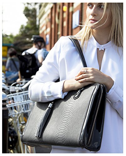-. Binding : Personal Computers -. Brand : My Best Friend is a Bag -. Department : womens -. Feature : DESIGNED BY A WOMAN - Stylish and Fashionable Laptop Shoulder Bag - Central Zipped Laptop Sleeve fits all Tablets, iPads and Laptops UP TO 17 INCHES â€" Make the right impression carrying this DESIGNER LAPTOP BAG / NO MORE ACHING SHOULDERS - Gorgeous faux Snakeskin and Patent Leather with colorful lining - Signature BfB Tassel for glamour and quality - Brushed Nickel Hardware - Best of all - The Lindsay is LIGHTWEIGHT AND DURABLE - AIRPORT FRIENDLY AND IDEAL FOR TRAVEL / BE AMAZED how much this Womens Business Bag holds - 3 x inside, side pockets for Cell Phone, Sunglasses, Business Cards etc PLUS 2 large side compartments â€" Detachable Shoulder Strap â€"- PLUS handy clip for Key Rings or Chains - never lose your Keys again - BEAUTY AND BRAINS COMBINED / Approx Size - 18†L x 12.5†H x 4†W - PLEASE MEASURE YOUR LAPTOP â€" our padded laptop sleeve is 16.5 inches wide â€" a computer is measured by its diagonal screen size â€" many 17 inch computers are considerable bigger in width. / Every Handbag from My Best Friend is a Bag is HAND MADE with 100% MANUFACTURERâ€TMS GUARANTEE AGAINST FAULTY WORKMANSHIP - ORDER NOW with absolute peace of mind - The BEST INVESTMENT YOUâ€TMLL MAKE IN YOUR BUSINESS WARDROBE -. ProductGroup : Personal Computer -. ProductTypeName : CARRYING_CASE_OR_BAG -. Size : 17 Inches -. Title : BfB Laptop Notebook Computer Shoulder Bag For Women - Lightweight Hand Made Briefcase With Up To 17 Inch Laptop Sleeve - Designed For Busy Working Women - Business Can Be Beautiful