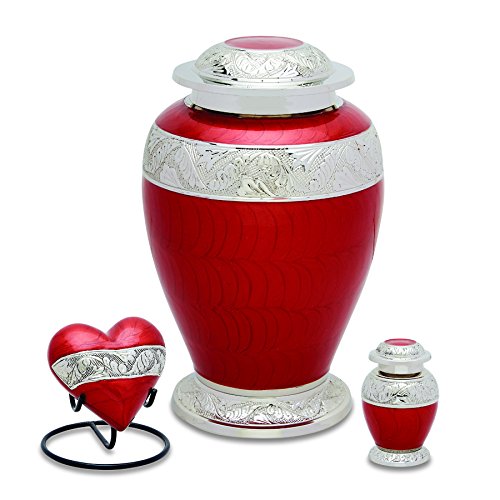 Urnsdirect2U 7585-S Berkshire Cremation Urn Set, Silver/Red