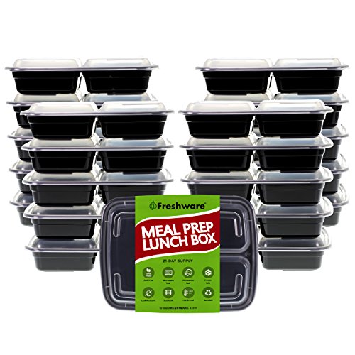 Freshware Meal Prep Containers [21 Pack] 3 Compartment with Lids, Food Storage Bento Box | BPA Free | Stackable | Lunch Boxes, Microwave/Dishwasher/Freezer Safe, Portion Control, 21 day fix (24 oz)