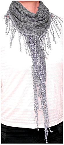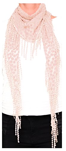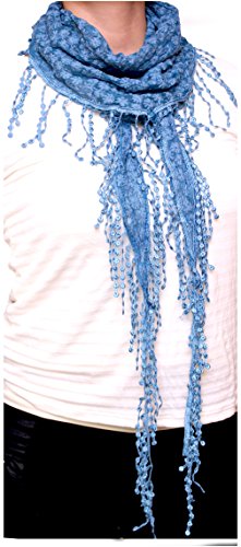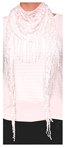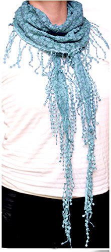 Product DescriptionAdd a feminine flair to your looks with this lightweight, sheer scarf bordered in lace. Small crotchet flowers gives this scarves a unique texture. Great as wrap, shawl and coverup for summer.0