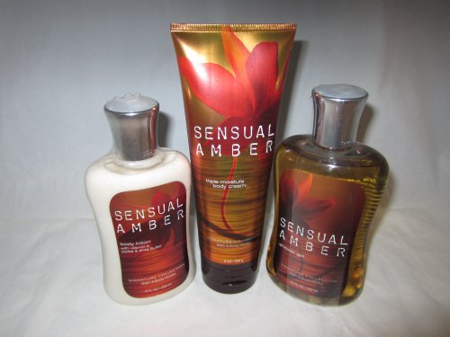 The scent of lotus petals & golden amber surrounded by creamy sandalwood Sensual Amber Gift Ultra Shea Body Cream, Body Lotion and Shower Gel Full Size Brand : Bath & Body Works MPN(PartNumber) : B00GLOG0EO Package Dimensions(LxWxH) : 22x13x12cm ; 1134 g