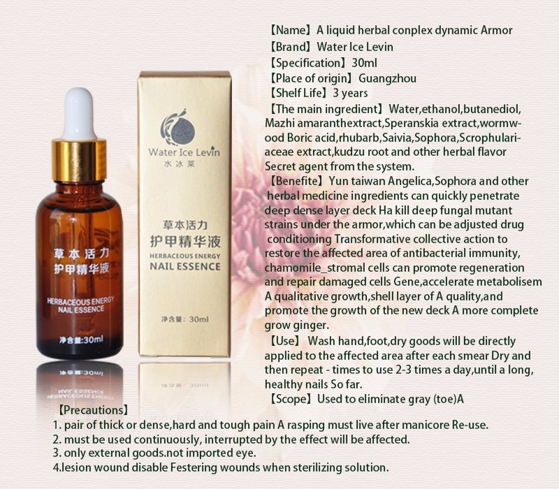 4.Ingredients: water,butylene, glycol, ethanol,mugwort leaf,speranskia herb,rhubarb,radix salviae miltiorrhizae,radix puerariae,boric acid,mazhi amaranthus, radix sophorae flavescentis,radix scrophulariae, herbs,secret made of contain root,radix sophorae flavescentis herbs drug ingredients can quickly penetrate the denselayer deep deck under a killing fungus and mutant strain,which medicine conditioning function to mobilize the collective transformation.u0026nbsp;