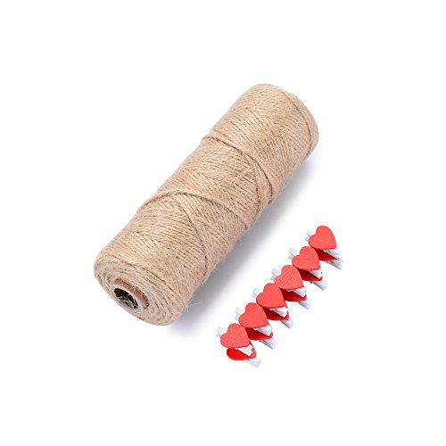 328Feet Natural Jute Twine and 24Pcs Mini Wooden Clothespins, 3Ply Industrial Packing Materials for Gift ,Decoration, Arts and Crafts Christmas twine Durable String for Gardening Applications