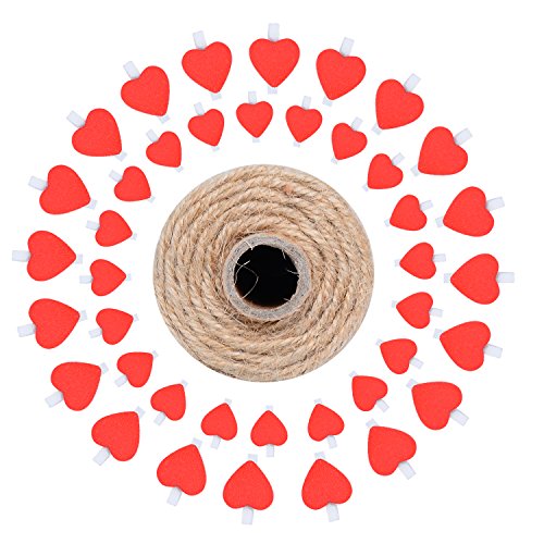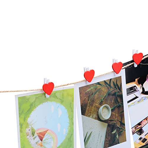 Size: Twine string Length: 2mm X 328 feet (2mm X 100 Meters) 3 Ply, Color Natural. Perfect thickness,light weight. It is durable and long enough for you to use. 24Pcs Love heart shape Wooden Photo Paper Peg Pin Size:1.42 x 0.41 x 0.28 inches (L*W*H)