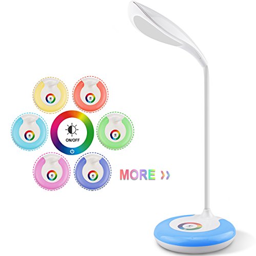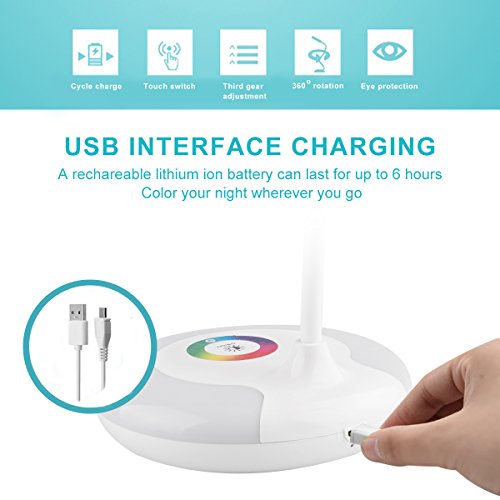 Cordless Dimmable Color LED Desk Lamp: Touch-Sensitive Control Panel, 256 Color Changing Base, 3 Adjustable Brightness Levels, Build-in 1000mAh Li-on Rechargeable Battery via Micro-USB Cable