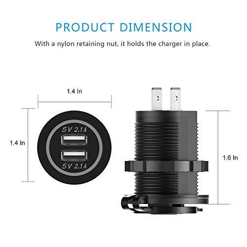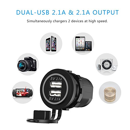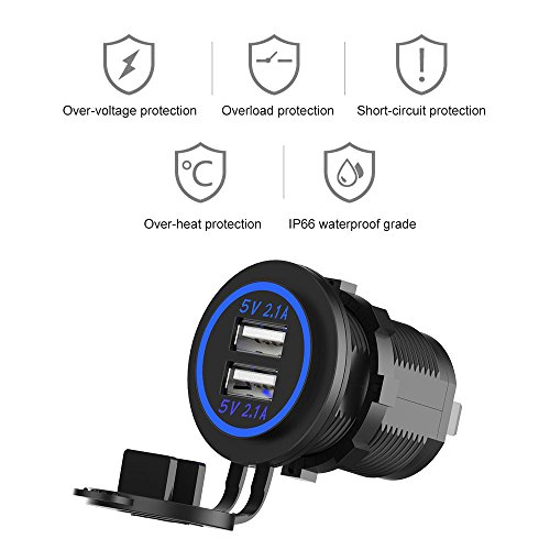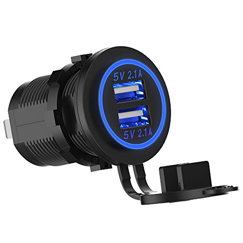 Tesla’s Dual USB 4.2A Charger Socket 12V/24V Waterproof Power Outlet for Car Boat Marine Motorcycle (4.2A-Blue)