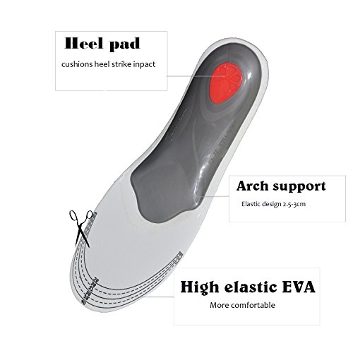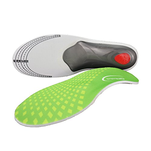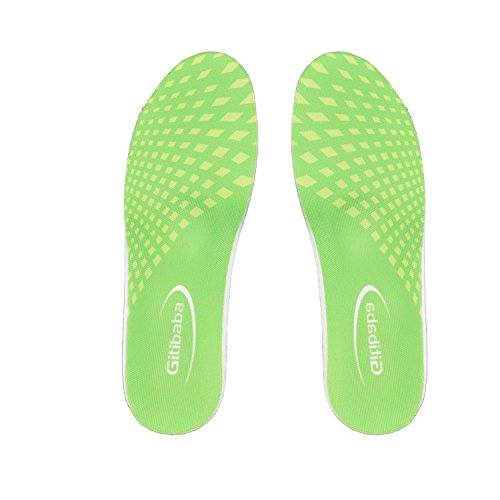 Product description Size Information: XL:US Men's Size 9.5-13.5/Women's Size 10.5-15(11-12.4 inches,315mm); L: US Men's Size 9.5-11/Women's Size 10.5-12(11-11.4 inches,290mm); S: US Women's Size 6-8.5/Men's Size 5-7.5 (9.25-10.23 inches,260mm) The cutting line can guide you to cut the insole to fit your size. Color:Green Do you know ? Your arch foot stress many times than normal people when having sports. Do you have these troubles ? The insoles are too hard. ? Feet pain when having sports. ? Have smelly feet. You need a step forward in comfort solutions!Gitibaba insole gives you: ?Arch Support: Gitibaba insoles offer full arch support to enhance the structure and stability of the foot, helping relieve pain and prevent injuries. ?Shock Absorption: The Silicone pads at the forefoot and heel,and the PVC arch can offer dual cushioning for a soft, supportive feel in your shoes. ?Moisture Absorption: Natural fabric with 21 ventilation holes absorbs moisture and reduce odor to keep your feet dry and odor free. About Our Service: ? We care about every single one of our customers. ? We pursue to provide you with pleasant purchasing feeling and much better user experience. ? We pay attention on premium quality and service, we focuse on the Health and Excellence. ? Any quetions or problems pls feel to contact us at your earliest convenience, we would do everything to solve them for you! ?We are from China, the world famous functional insole factory, Amazon. We are late, but we will try our best!