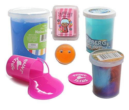 SET OF 5 SLIMES - This slime and putty sample lets you try out 5 different oozy, stretchable and mold-able slimes. Each putty offers something different for your kids who like messy sensory play.