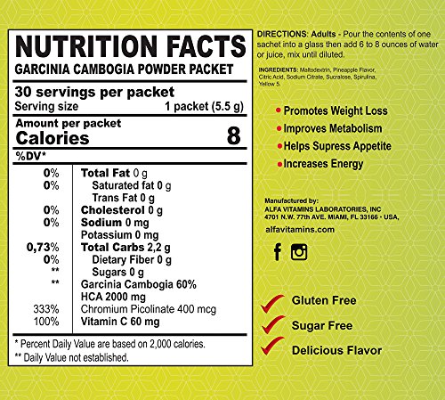 -. Title : BEST Garcinia Cambogia 2000mg per Serving - 60%HCA PLUS Chromium 400mcg - Powder Supplement By ALFA VITAMINS - Premium Quality Source of WEIGHT LOSS,VitaminC 100%DV -PURE NATURAL FAT BURNER-30 Sachets