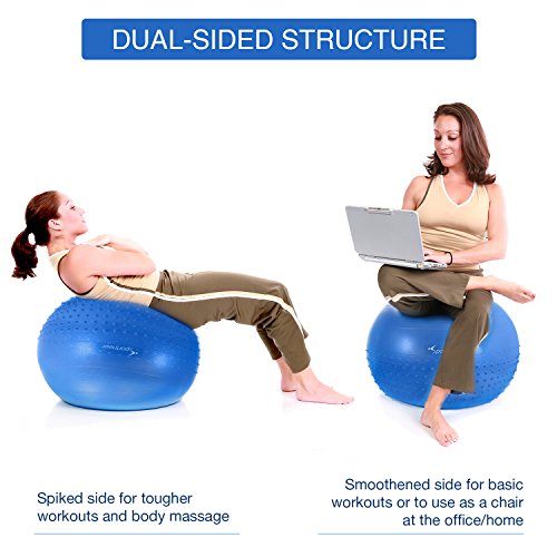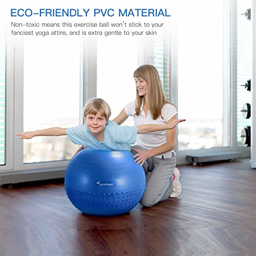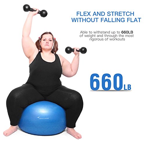 Studio : Sportneer Publisher : Sportneer Binding : Misc. Product Description Sportneer Fitness Exercise Ball For Home Gym / Office Chair YOUR WORKOUT, ROLLED TO THE NEXT LEVEL. Endless sit-ups and tedious stretches on the treadmill can be a real drag. But what if we told you workouts could feel like no work at all? This Sportneer Exercise Ballallows you to perform back, abs, shoulders and core strengthening exercises anywhere you want to, and the yoga ball stretches your workout to a whole new dimension. And if you're looking to kick things up a notch, the ball helps you to perform a wide range of balance and stability exercises, perfect for both fundamental training and high intensity workouts.