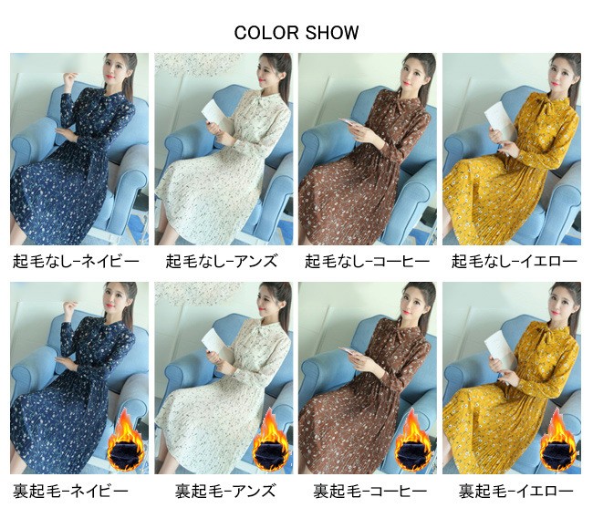 寒い季節にも外出できる裏起毛タイプを用意したシフォンワンピース♪