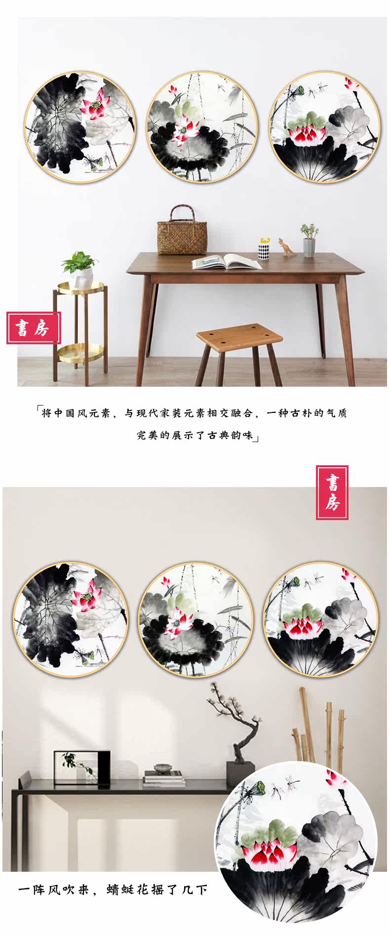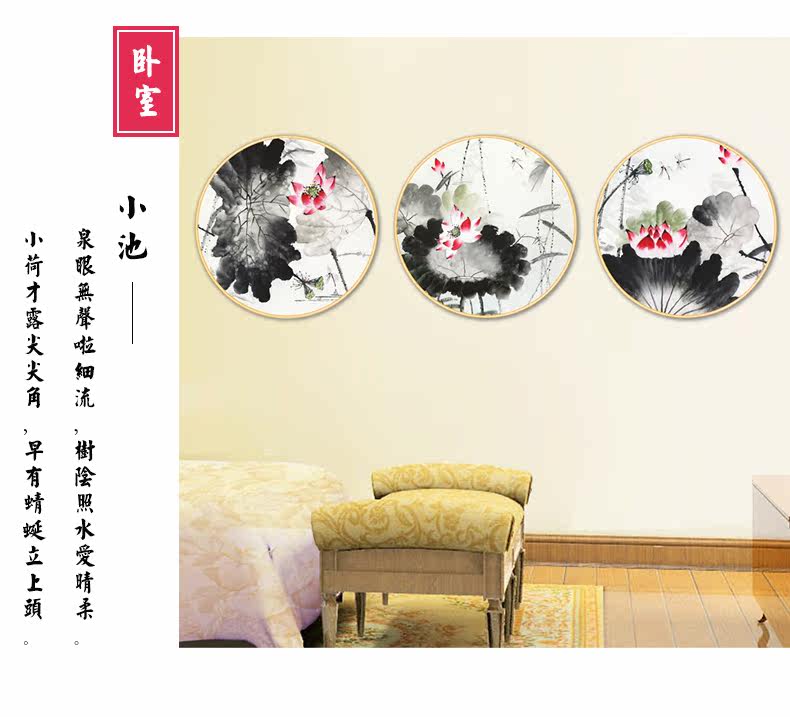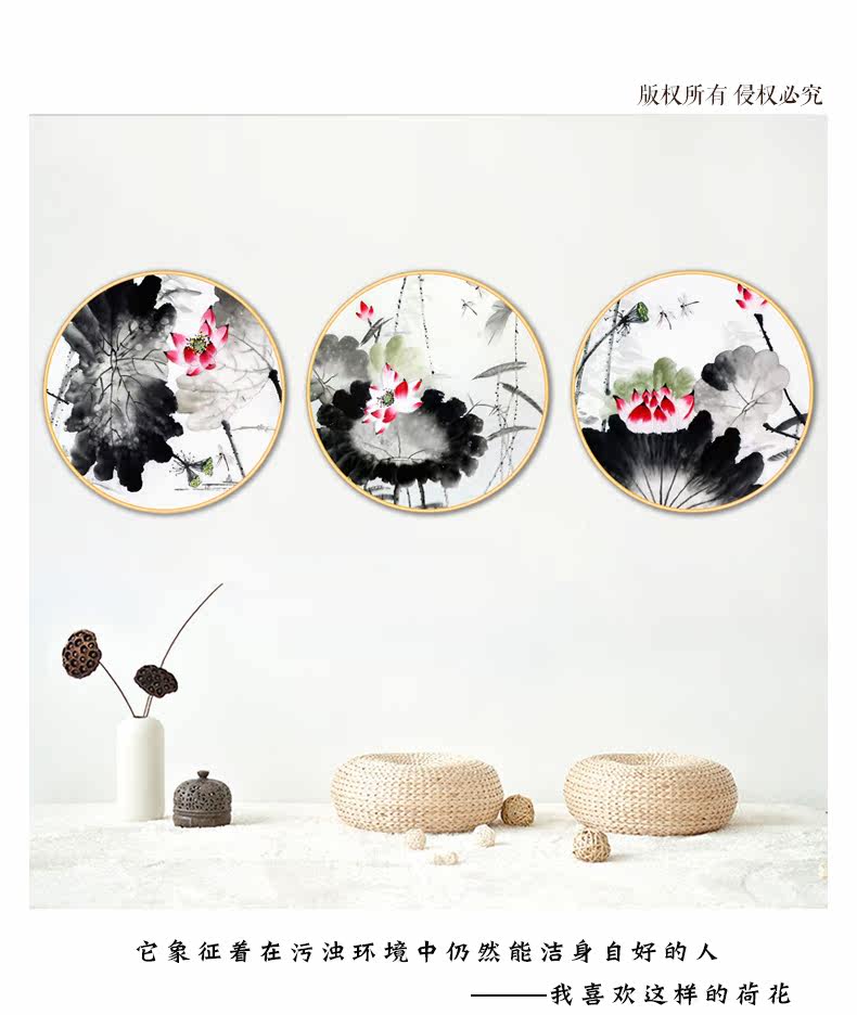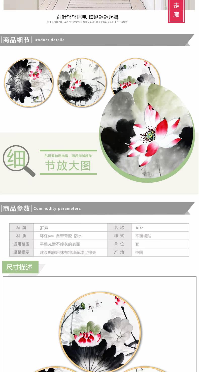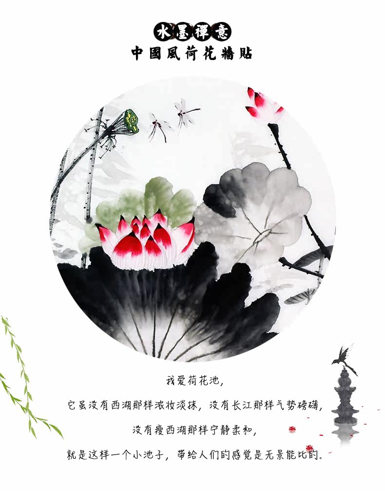 中国风简约荷花墙贴客厅卧室书房背景墙装饰自粘壁纸墙纸贴画贴纸