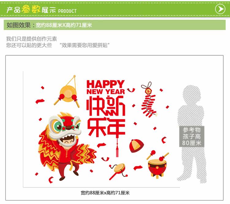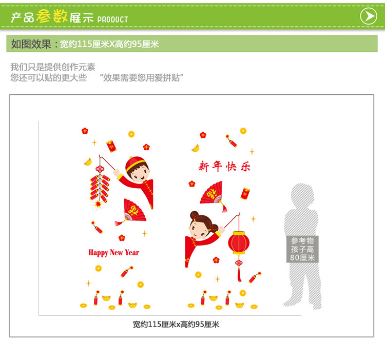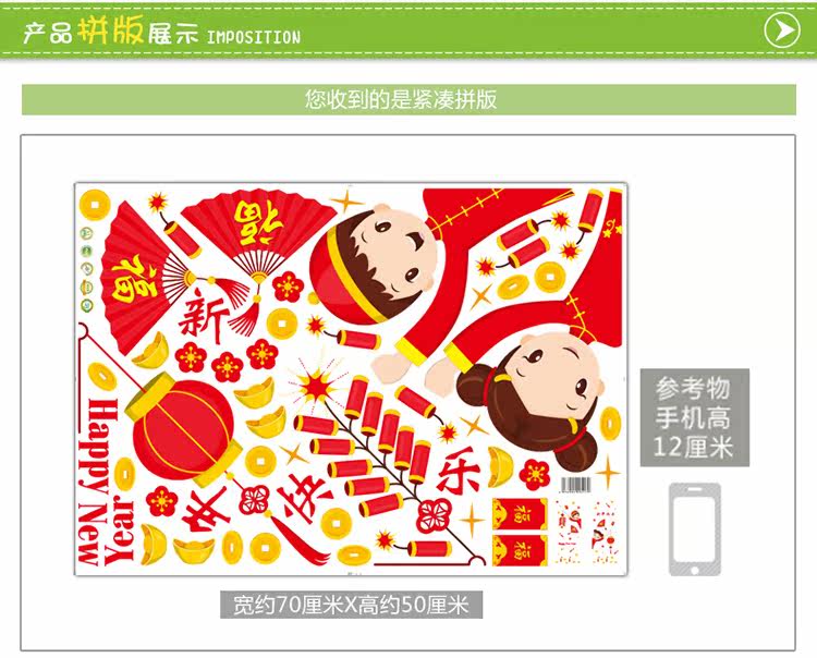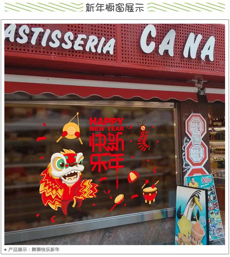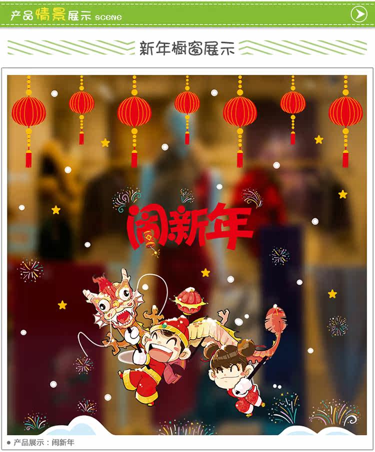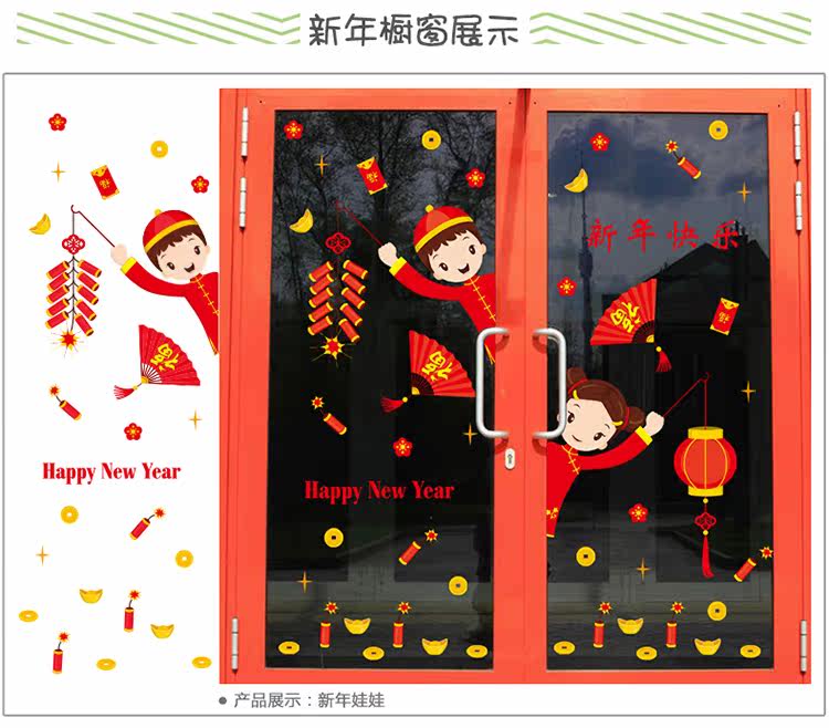 2017新年过年装饰品店铺橱窗玻璃门元旦春节背景布置墙贴纸贴画