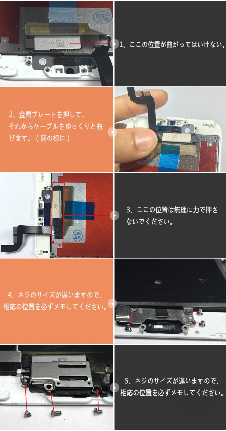 Please be sure to note the original position of the screw because the size of the red circle part varies according to the place; (Note: If you use a long screw at the short screw part, the circuit may short-circuit