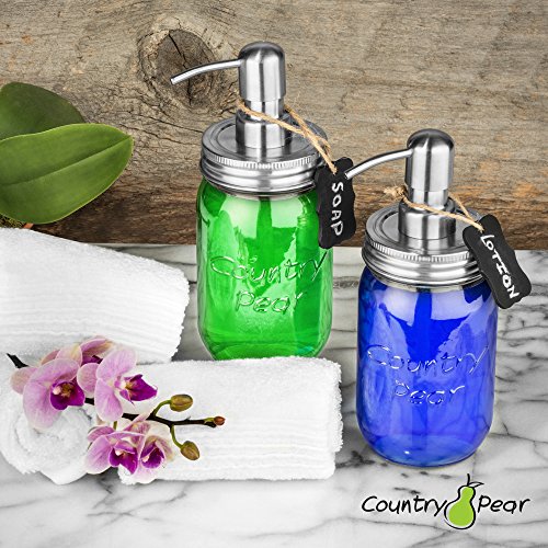 ★ A BETTER DESIGN –Our Satin Metal 304 Stainless Steel Dispensers Lids are coated with a rust proof seal a high volume reliable pumping mechanism and the rustic feel of an authentic glass Country Pear brand Mason Jar to create a beautifully old fashioned look for any home décor or accessories.