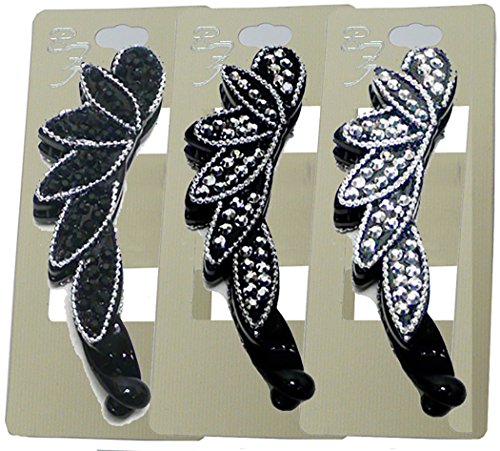 Set of 3 Banana Clips with Sparkling Stones HM86420-0065-3