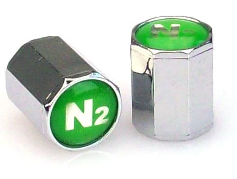 SKU 509 - 500 Pak Chrome Nitrogen Valve Stem Caps ABS Green N2 Insert Oversize 10 mm Complete with Silicone Inner Seal