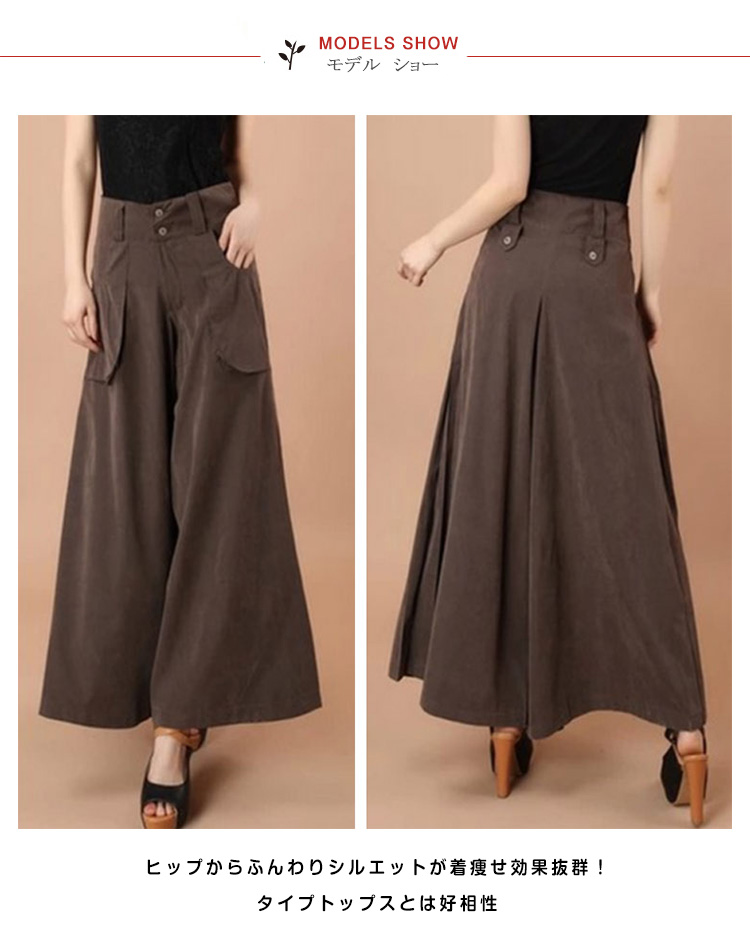 | エレガントなキレイめワインパンツ!ゆったりシルエットで楽な着心地◎ヒップからふんわりシルエットが着痩せ効果抜群!タイプトップスとは好相性生地をたっぷりと使用し、ストンと落ち感のあるAラインシルエットが女性を魅せるハイヒールパンプスと合わせれば、脚長効果がワンランクアップ♪大人の着こなしを楽しめます | |
